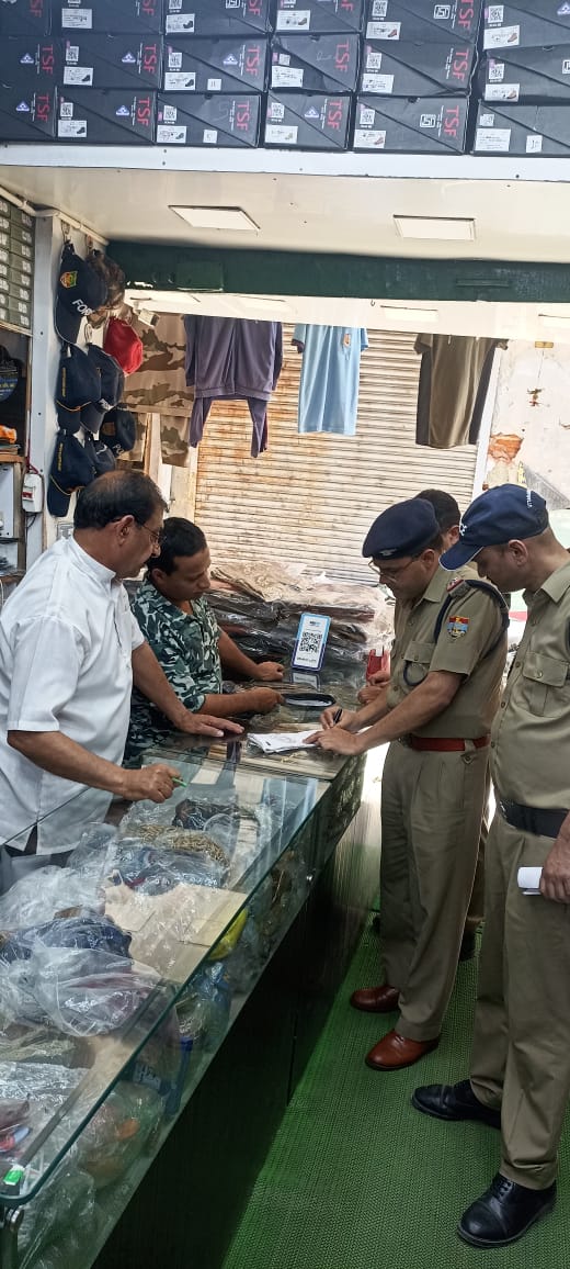 उक्त निर्देशों के क्रम में पुलिस द्वारा अलग-अलग थाना क्षेत्रों में ऐसे सभी दुकानों को चिन्हित करते हुए उनके संचालकों को बिना आई0डी0 लिये किसी भी व्यक्ति को आर्मी/अर्द्ध सैनिक बलों व अन्य सुरक्षा एजेन्सियों से सम्बन्धित सामान की बिक्री न करने तथा उक्त निर्देशों का उल्लघंन करने पर उनके विरूद्ध आवश्यक वैधानिक कार्यवाही किये जाने की हिदायत दी जा रही है।