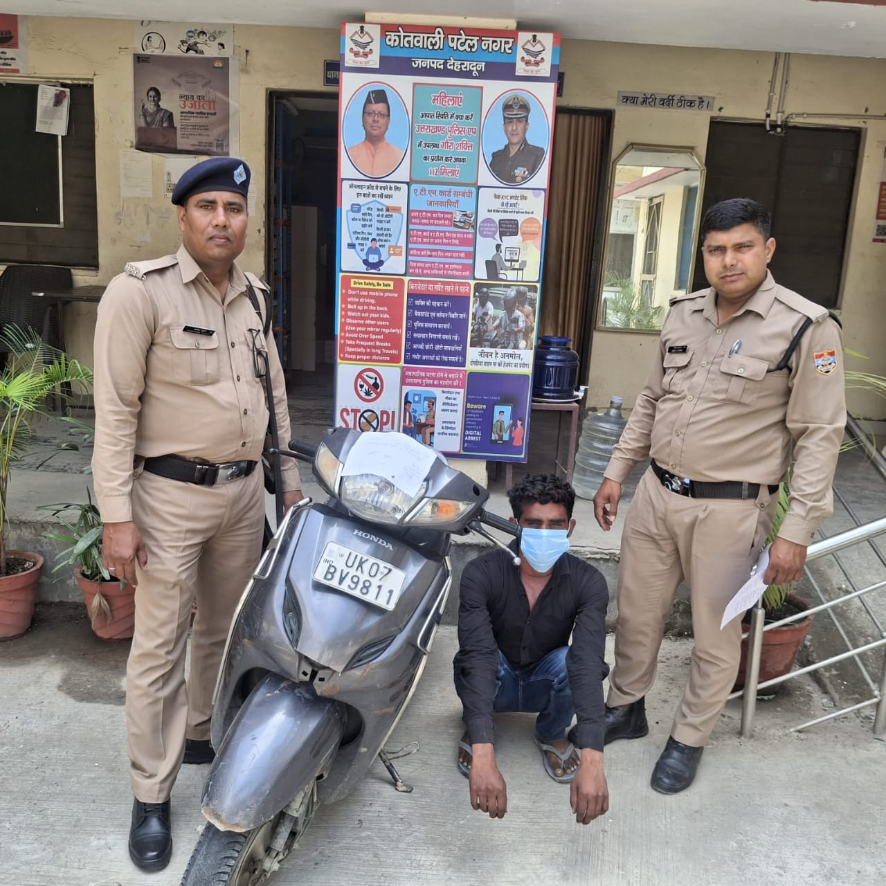 घटना के अनावरण एवं अभियुक्त की गिरफ्तारी हेतु गठित पुलिस टीम द्वारा घटनास्थल के आस-पास तथा आने-जाने वाले रास्तों पर लगे सी0सी0टी0वी0 कैमरों की फुटेजों से संदिग्धों के हुलिये के सम्बन्ध में आवश्यक जानकारी एकत्रित की गई। प्राप्त हुलिये की सहायता से सुरागरसी पतारसी करते हुए स्थानीय मुखबिर तंत्र को भी सक्रिय किया गया। साथ ही पूर्व में इस प्रकार के अभियोग में जेल गये अभियुक्तों की वर्तमान स्थिती का भौतिक सत्यापन किया गया। पुलिस टीम द्वारा किये जा रहे प्रयासों के परिणाम स्वरूप दिनांक: 08-05-25 को चैकिंग के दौरान मुखबिर की सूचना पर अभियुक्त जावेद पुत्र इकबाल को सॉलिटेयर हाईट अपार्टमेन्ट के निकट स्थित एक खाली प्लॉट से गिरफ्तार किया गया, अभियुक्त के कब्जे से चोरी की एक्टिवा संख्या: यू0के0-07-बीवी-9811 बरामद की गई। पूछताछ के दौरान अभियुक्त द्वारा बताया गया कि वो नशे का आदी है तथा अपने नशे की आवश्यकताओं की पूर्ति के लिये अभियुक्त द्वारा उक्त चोरी की घटना कों अंजाम दिया गया था।