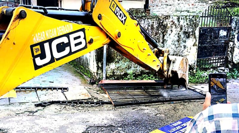 जिलाधिकारी के निर्देशों के अनुपालन में जेब्रा फोर्स महिला एवं पुलिस बल के साथ नगर निगम एवं प्रशासन की टीम द्वारा सिरमौर मार्ग पर सार्वजनिक रास्ते पर अतिक्रमण कर बनाए गए गेट को ध्वस्त कर दिया है।