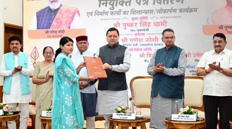 मुख्यमंत्री श्री पुष्कर सिंह धामी ने शनिवार को मुख्यमंत्री आवास स्थित मुख्य सेवक सदन में जनजाति कल्याण विभाग के अन्तर्गत संचालित राजकीय आश्रम पद्धति विद्यालयों में चयनित 15 सहायक अध्यापकों को नियुक्ति पत्र वितरित करने के साथ ही 15 करोड़ रुपए से अधिक लागत की विभिन्न विभागीय निर्माण योजनाओं का लोकार्पण व शिलान्यास किया।