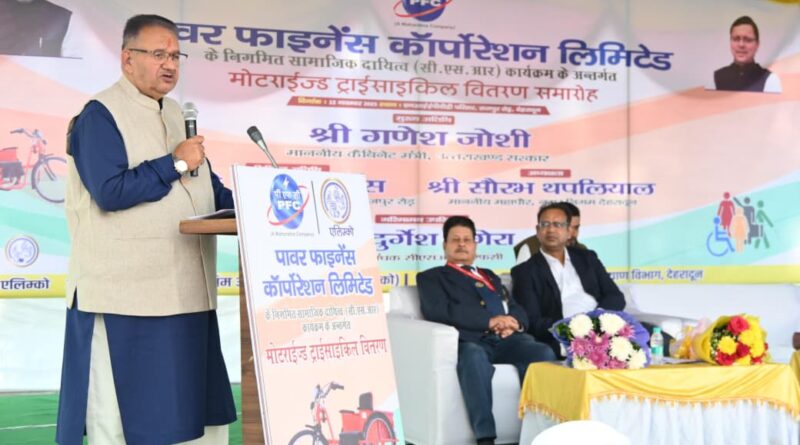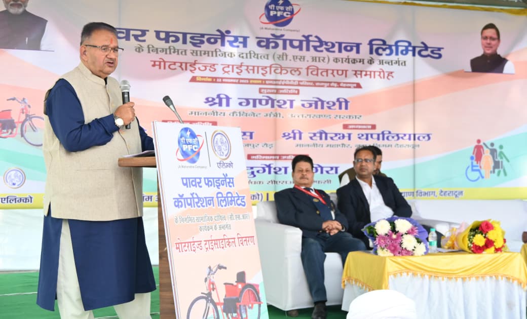 कैबिनेट मंत्री गणेश जोशी ने देहरादून के राष्ट्रीय दृष्टि दिव्यांगजन सशक्तिकरण संस्थान परिसर में एलिम्को के माध्यम से आयोजित दिव्यांगजनों को मोटराइज्ड ट्राईसाइकिल (इलेक्ट्रिक) वितरण कार्यक्रम में मुख्य अतिथि के रूप में प्रतिभाग किया। कार्यक्रम में पावर फाइनेंस कॉर्पोरेशन लिमिटेड (पीएफसी) की सीएसआर निधि से 169 दिव्यांगजनों को निशुल्क इलेक्ट्रिकमोटराइज्ड ट्राईसाइकिलें वितरित की गईं।