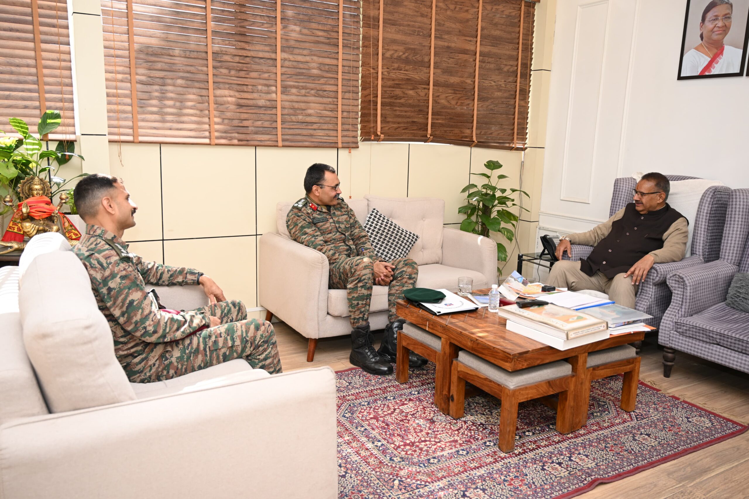 सैनिक कल्याण मंत्री गणेश जोशी से आज उनके कैंप कार्यालय में अतिरिक्त महानिदेशक, पुनर्वास निदेशालय (पश्चिमी क्षेत्र) के ब्रिगेडियर सुधीर मलिक ने शिष्टाचार भेंट की।